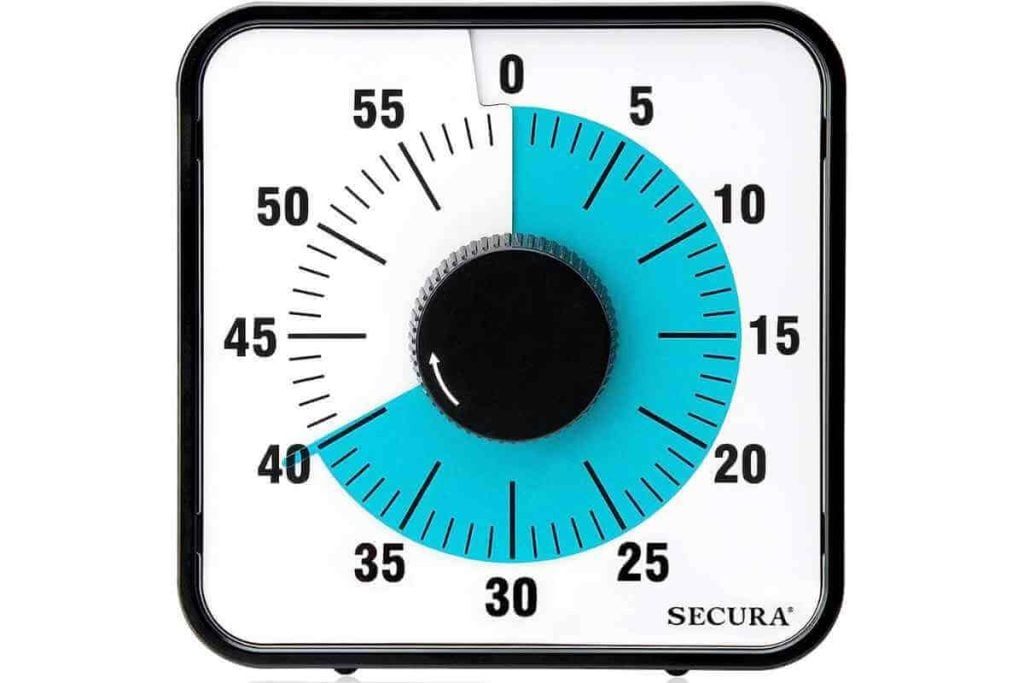 One of the tools we use in our house most frequently to stay on task is a visual timer. As time passes, the blue on the clock disappears, making it easier to visualize how much time you have left to spend on a particular task.