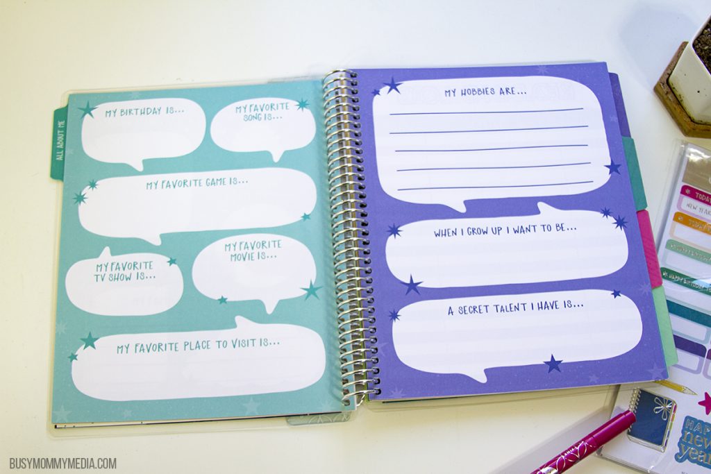 This little planner would actually make a great keepsake later because there are so many ways for kids to make a record of the things that are important to them.