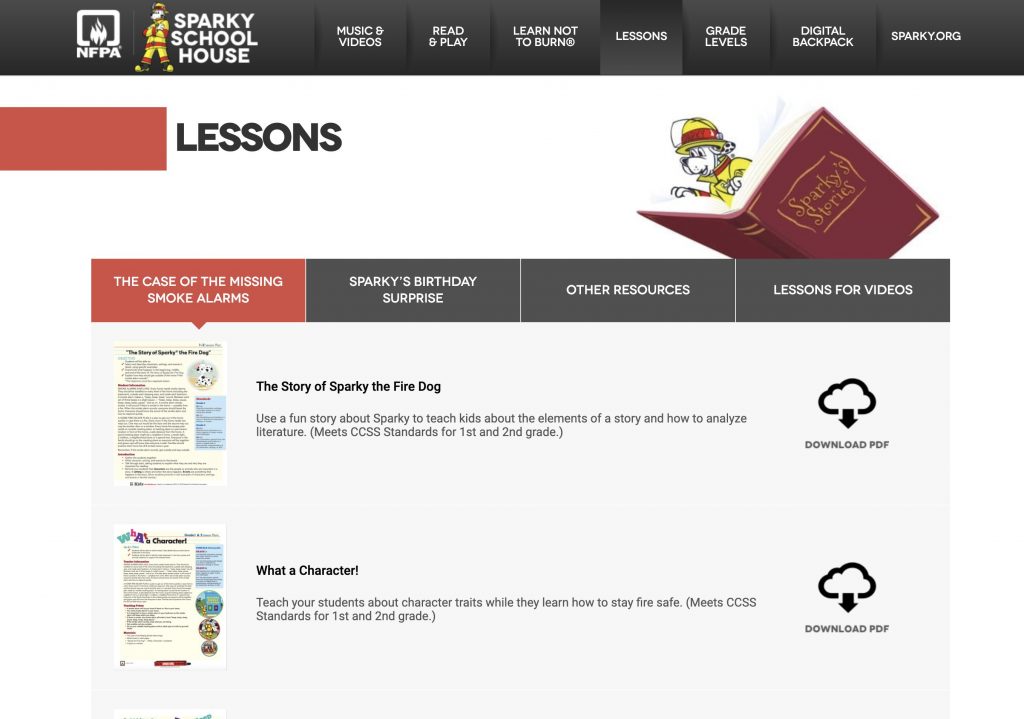 Sparky.org is the kid-focused site while SparkSchoolhouse.org has fire-safety resources for teachers and homeschoolers.