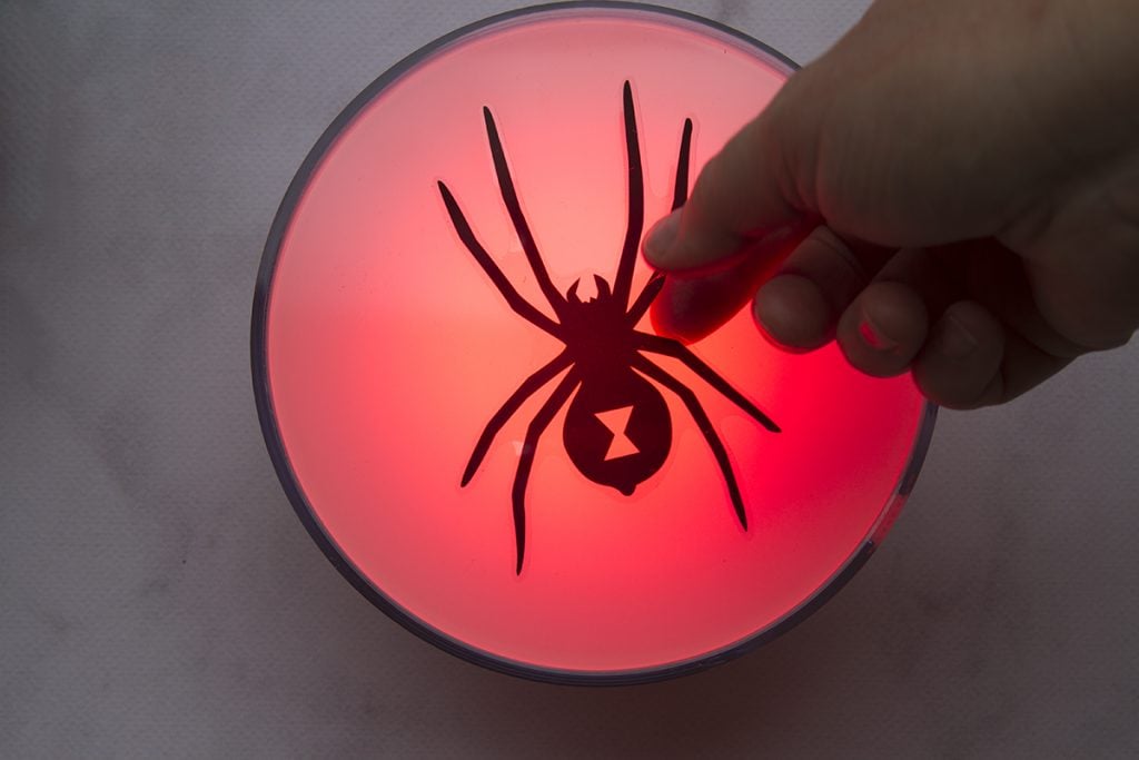 We used it to add red light behind the black widow spider vinyl sticker that we put onto our Hue Go light.