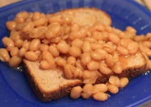 I love to cook – most of the time – but my kids seem to want to eat every day so I’m constantly trying to put together new kid-friendly meals. I grew up eating beans on toast so I thought it was standard lunch fare. I was shocked when none of my friends had ever heard of it, but my mom is British and it took me a while to figure out that beans on toast is standard lunch fare – in England. My kids love it though and it’s simple to make, see you take beans and you put them . . . on toast. Not overly complicated but pretty tasty. We usually have it for lunch but it will do for a quick dinner (or a snack if one of the kids is going through a particularly strenuous growth spurt). The traditional British version uses Heinz baked beans, which are usually hard to find, but like so many things from my childhood, I got used to the adulterated American version and I prefer pork and beans for this.