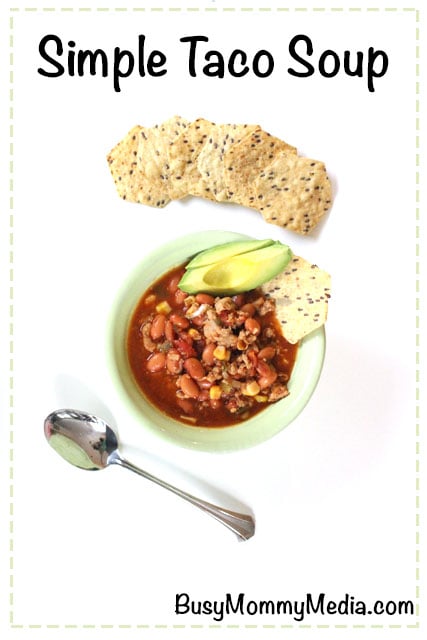 We all have crazy nights when dinner is the last thing you really have time for. But, you’ve got to eat. On nights like that I turn to this super easy taco soup recipe that I can throw together in a matter of minutes. It’s so easy that I usually put my kids to work opening cans and dumping them into the pot.