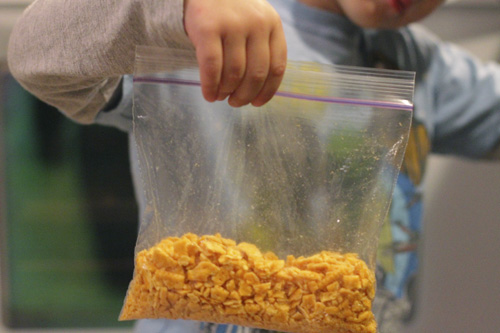 - Put the cheese crackers and breadcrumbs in a plastic baggie and seal the bag, locking in as little air as possible to prevent the bag from tearing. Crush the crackers by hand.