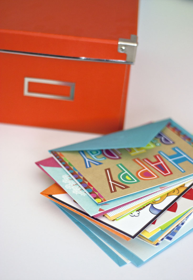 I needed all my cards to be easy to find and organized so I found a small box to store them in that would also look great in my gift wrap station.