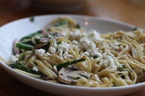 Noodles & Company has a great new dish that includes plenty of veggies and is a healthy option when eating out. Their new Asparagus and Lemon Linguine has a wonderful fresh taste that is perfect for spring. The noodles are made from hard amber durum wheat so you can indulge relatively guilt free and the inclusion of snap peas, red onions, and mushrooms, topped with a generous helping of feta cheese makes this dish absolutely delicious.
