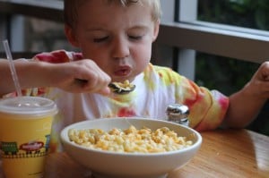 I’ve been happy to see that a few restaurants are branching out and offering healthier choices to kids (although, lets face it, if given the choice between the same container of mandarin oranges that kids have at home and french fries they are going to go for the fries). Noodles & Company has been one of our family favorites for years because although they do offer the standard choice of mac and cheese, their mac and cheese is in no way standard. While mac and cheese is a higher fat option, it is the ultimate comfort food and I have a hard time turning it down most of the time.