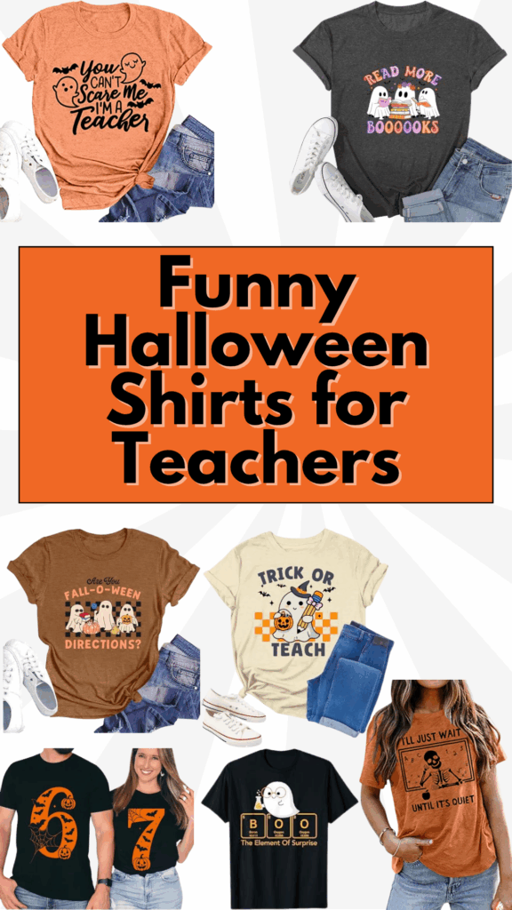 Looking for funny Halloween shirts for teachers? These teacher-approved Halloween tees are perfect for showing off your spooky spirit in the classroom while keeping things comfortable and fun.