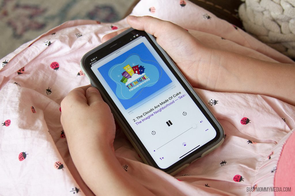 Each episode of Imagine Neighborhood that I listened to with my kids sparked some important conversations in our home. The host, Scotty Iseri, a Chicago Public Radio veteran, has a soothing voice and does a great job keeping kids engaged. He pulls kids in and helps give them words to some of those big feelings that they don’t know what to do with.