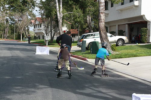 After our son started playing ice hockey last fall we bought him used roller blades so he could start working on his skating at home. Then we bought him a used outdoor hockey stick. Then my husband bought used roller blades and a stick for himself.