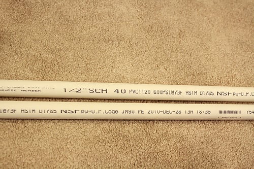 2. We used two 10’ pipes. Ours are ½” but  ¾” pipe will work just as well. The fittings need to be the same size as the pipe.