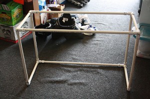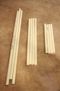 4. Cut the two lengths of pipe. We made two nets, one slightly smaller than the other so they can nest easily for storage. Our pipes measure 21” H x 33” W x 14” D (our second net measures ½” smaller all the way around).