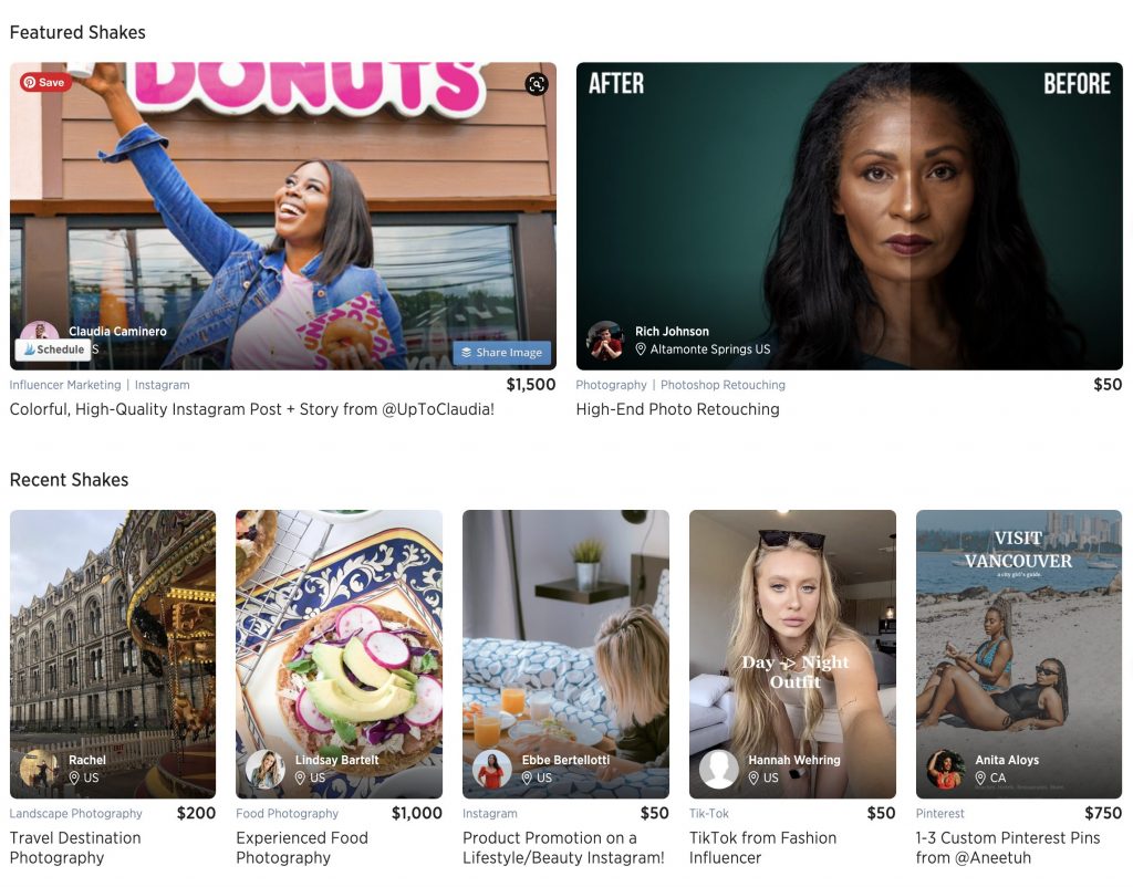 Each Shake is free to list. Once listed, clients are able to browse through your offerings and portfolio work to determine whether they would like to purchase one of the Shakes you have listed.