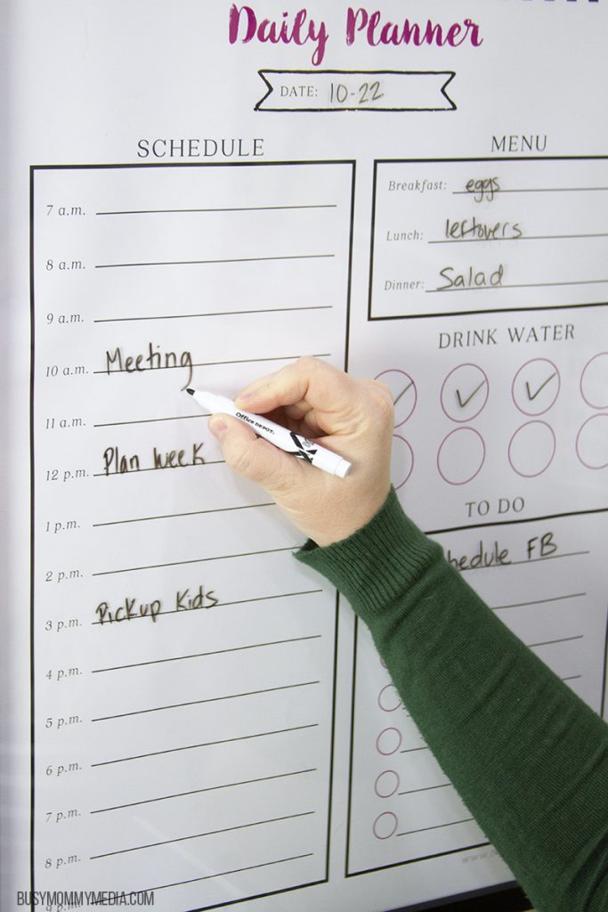 With so many things on my plate, I needed an easy way to manage my time. I took my favorite daily planner (download the pdf here) and printed it in large poster format at Office Depot. I was able to print it and pick it up just a few hours later, which was exactly what I needed with my schedule being so full.