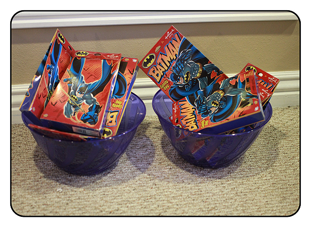 5. Simplify the Games – I used to plan games that would keep kids busy for the entire party. By the end, I was always exhausted. This time we put together a few simple games but the kids were having so much fun playing with all the birthday toys that they didn’t even do most of them. My son’s favorite was our makeshift pin the tale on the donkey game. We blew up a picture of the Batmobile, stuck it to foam board and called it pin the wheel on the Batmobile. Huge hit!