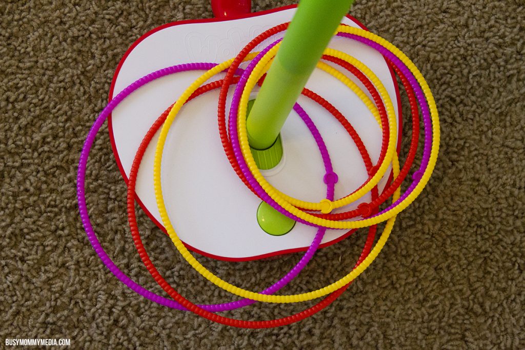 The way the game works is kids take turns tossing rings (of various sizes) onto the top of the wobbly worm. The worm is height adjustable from 13” to 36” so it works for a range of age groups or can just grow with your child as she wants something more challenging.
