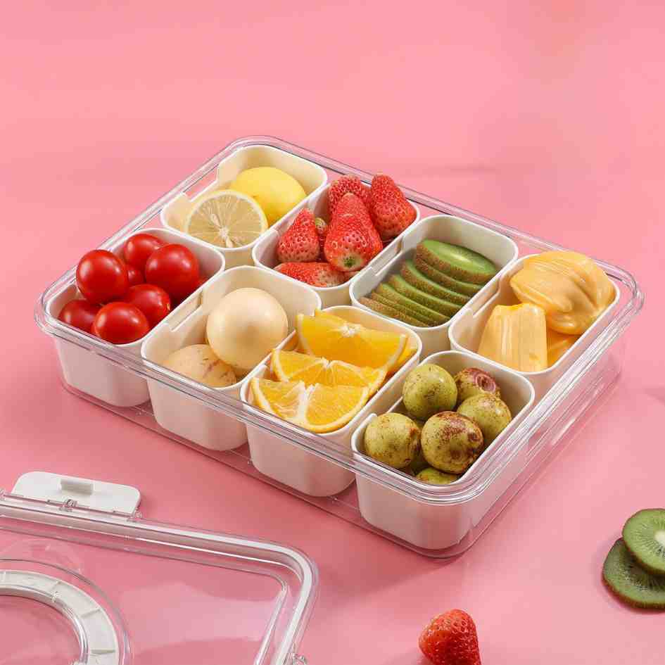 The lid features a secure snap buckle design and a handy handle, making it easy to transport without spills. Whether they’re packing fruits, nuts, candy, or other treats, this container helps keep everything organized and easy to access. Perfect for any outing or casual get-together, it’s a must-have for keeping snacks neat and portable.