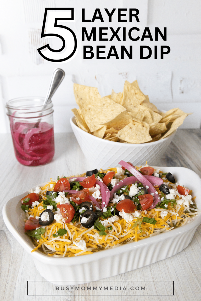 When it comes to party food, there are few things better than a good Mexican 5 Layer Bean Dip. This Mexican recipe is easy to make and a serious crowd-pleaser.