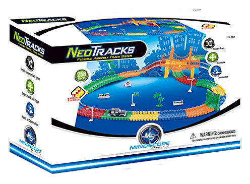 Mindscope Neo Tracks Twister Tracks 258 Flexible Track System – This is a great car track because it is so simple to put together, and it is flexible so your child can bend it however they want!