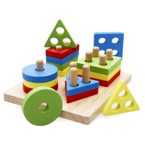 Geometric Blocks Stacking Puzzle – I love that this stacking toy is more challenging than the standard ring stacking toy. They can practice their shapes, sorting, and hand-eye coordination.