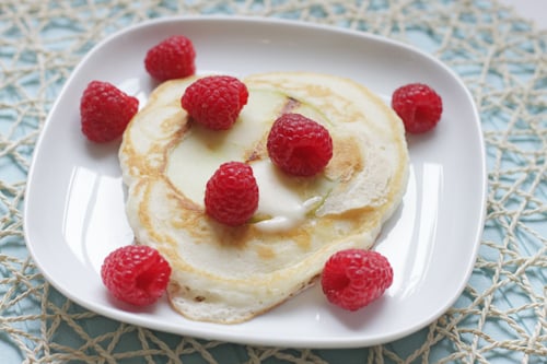 Pancakes are one of the all-time best comfort foods around. I personally like mine filled with fruit — banana pancakes are a favorite around our house. This apple filled pancake recipe gives breakfast a fun twist and requires next to no preparation.