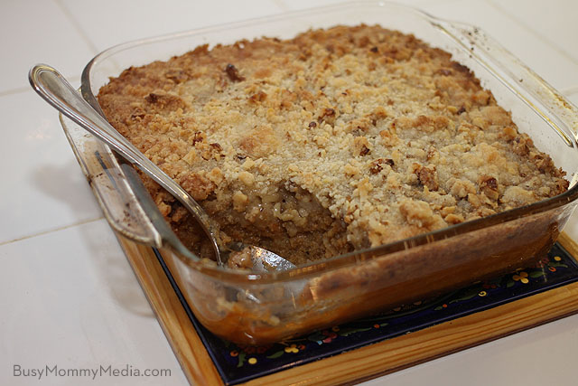 When you have your crumb topping, sprinkle it over the top of your sweet potato mixture.