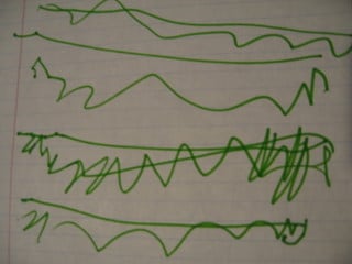 Before preschoolers are able to write the letters of the alphabet they will practice “writing” notes and letters. This early writing often looks like long squiggly lines across the page but it will eventually evolve into true letters.