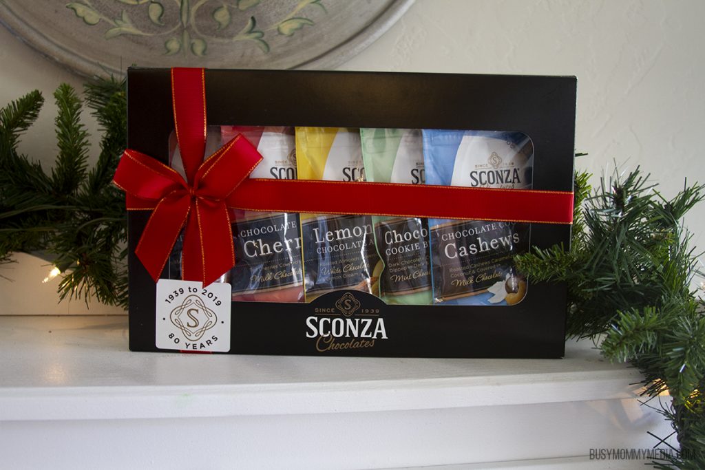 Sconza is selling a fantastic holiday gift box on their website that makes an amazing gift idea. My family is a HUGE fan of the Lemoncello Chocolate almonds (if you haven’t tried them yet you are seriously missing out). They have so many other great varieties too.