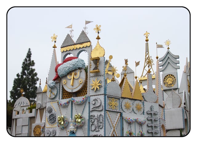 Disneyland does a great job of decking the rides out during the holidays as well. It’s a Small World is one of our favorites and it undergoes a heavy makeover during the holiday season, inside and out.