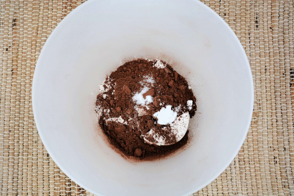 - Add the flour, cocoa powder, baking soda, and salt to a large bowl.