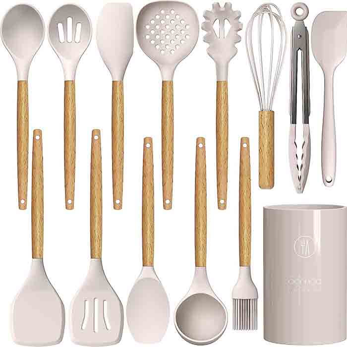 Kitchen utensils are the foundation of your kitchen and this silicone kitchen utensil set has it all! Keep everything together in one place. This set is attractive enough that you won’t even mind giving it prime real estate on your kitchen counter.