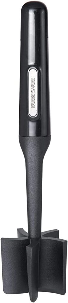 This meat masher simplifies cooking ground meat or mashing any other softer foods. It does a much better job of breaking up ground meat than a wooden spoon or a spatula does.