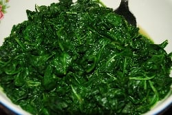 -Use a big pan, but don’t worry if the spinach looks like it’s going to sit in a mound six inches above the top of your pan. The spinach cooks very quickly and the volume will reduce to a more manageable one in a minute or two if you keep moving it around.